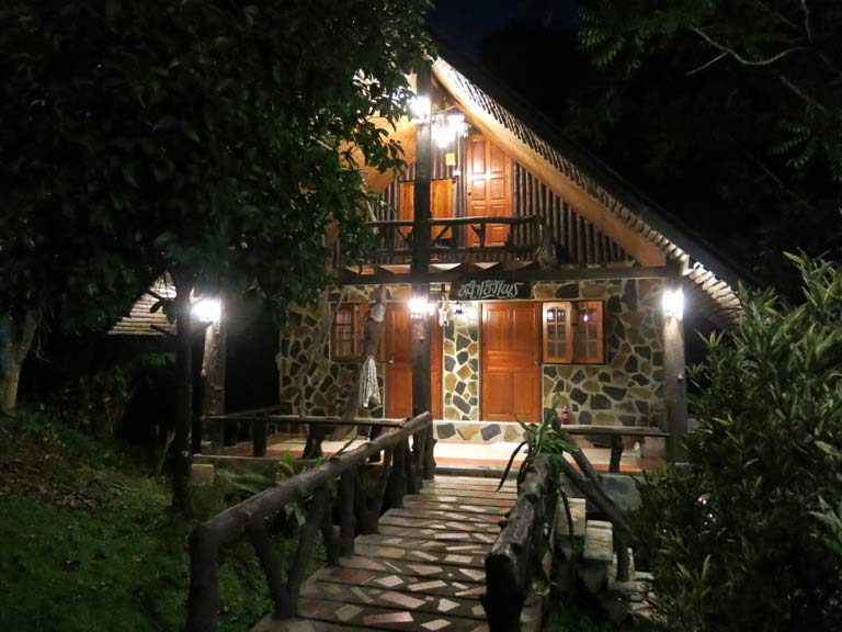 ห้องพักประกอบไปด้วย ห้องพักแบ่งเป็น 4 ห้อง ชั้นบน 1 ห้อง ชั้นกลาง 2 ห้อง ชั้นล่างอีก 1 ห้องจ้า รีสอร์ทนี้จะเน้นแนวคิดพึ่งพิงธรรมชาติ ลดการใช้พลังงาน ภายในห้อง จำไม่มีแอร์ ไม่มีทีวี ไม่มีน้ำอุ่น กระทั่งสัญญาณโทรศัพท์ของ Dtac ก็แทบจะไม่มี เหมาะอย่างหรับผู้ที่ต้องการพักผ่อนอย่างสงบจริงๆ อิอิ