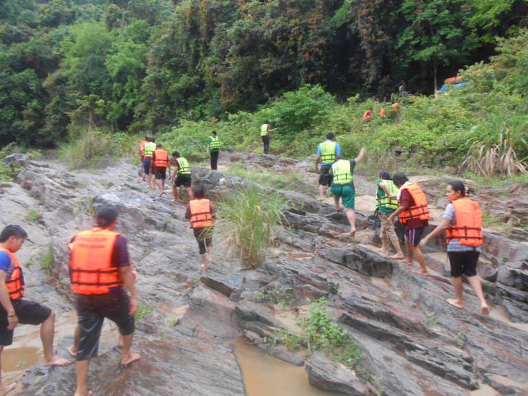 ช่วงแรกจะเป็นทางวิบากเดินขึ้นเขาประมาณเจ็ดร้อยเมตรแรก